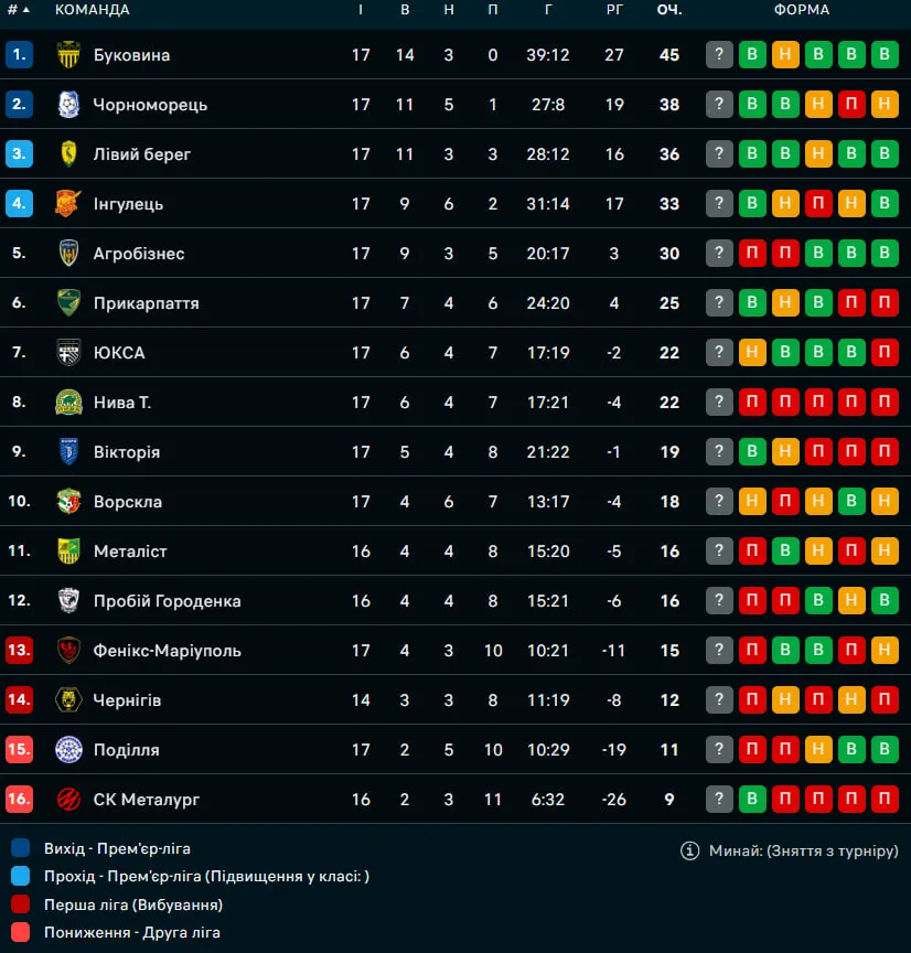 Буковина рветься УПЛ, а як справи у Чорноморця та Ворслки: результати дня і турнірна таблиця Першої ліги