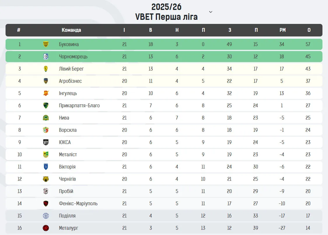 Черговий тріумф Буковини, перемога Чорноморця, а як зіграли інші: результати дня у Перші лізі – таблиця
