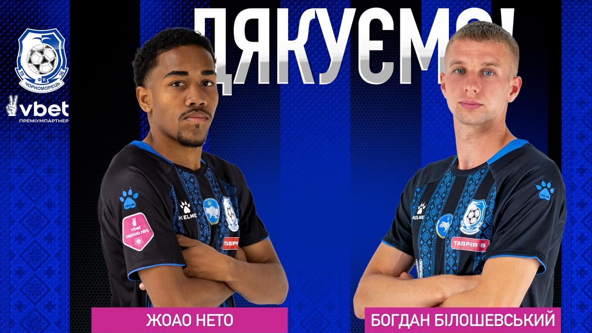 Футбольний клуб Чорноморець завершив співпрацю з Жоао Нето та Богданом Білошевським. Про це інформує пресслужба клубу Першої ліги.
