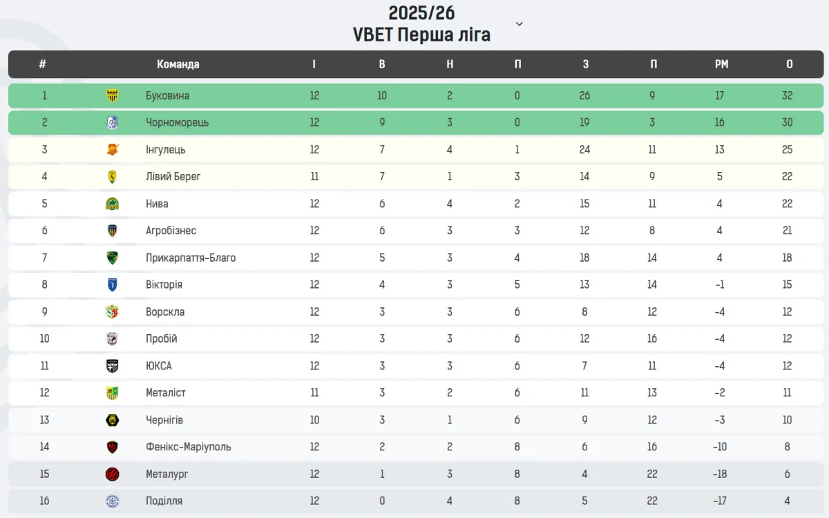 Лівий Берег здобув третю перемогу поспіль: турнірна таблиця Першої ліги після 12-го туру