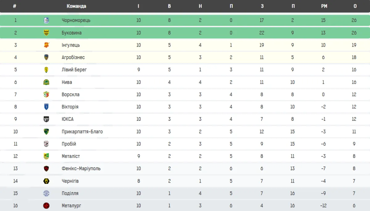 Матчем Чорноморець – Вікторія закінчився 10-й тур Першої ліги: результати всіх поєдинків і турнірна таблиця