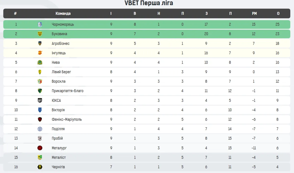 Відбулися усі суботні матчі дев'ятого туру Першої ліги 2025/26. Чорноморець переміг НК Пробій, Металіст програв Буковині, а Лівий Берег поділив очки з Нивою Тернопіль.