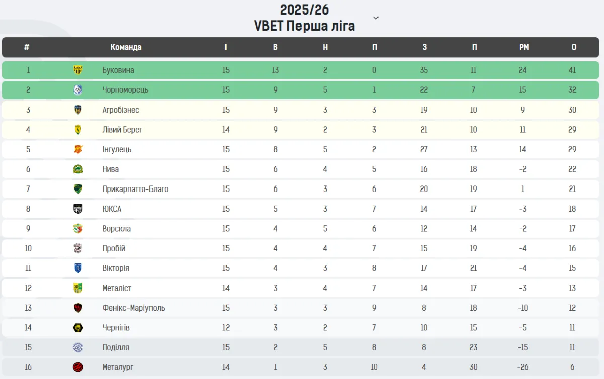 9 листопада завершилися недільні поєдинки 15-го туру Першої ліги 2025/26.