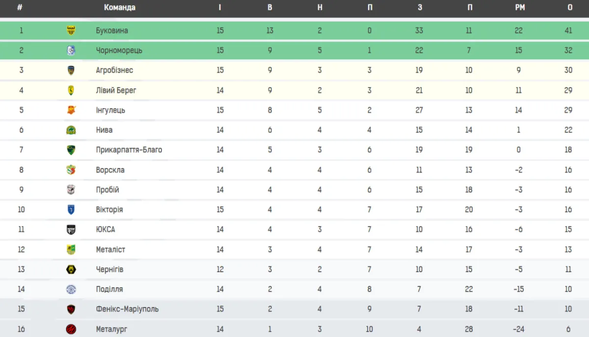 У Першій лізі України пройшли чергові матчі 15-го туру. Зокрема, Агробізнес зумів здобути перемогу над Черніговом, а Металіст зіграв проти Чорноморця.