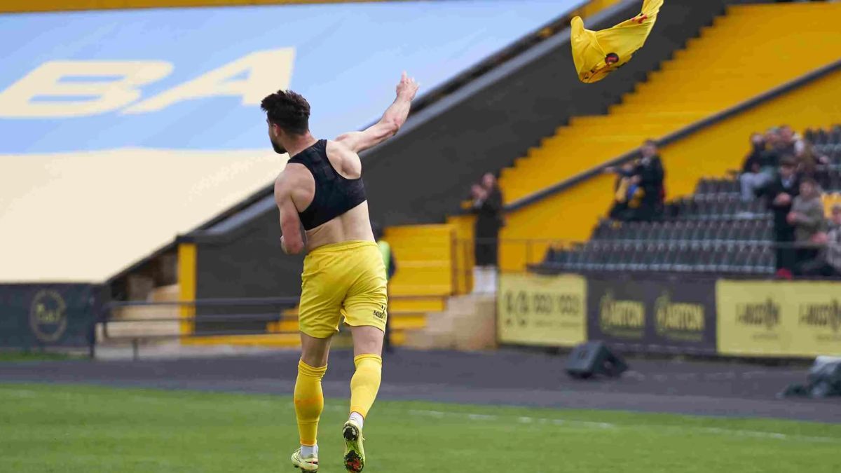 Шалена радість після голу Фенікс-Маріуполю хавбека Буковини Вадима Вітенчука. Фото: ФК Буковина (Чернівці)