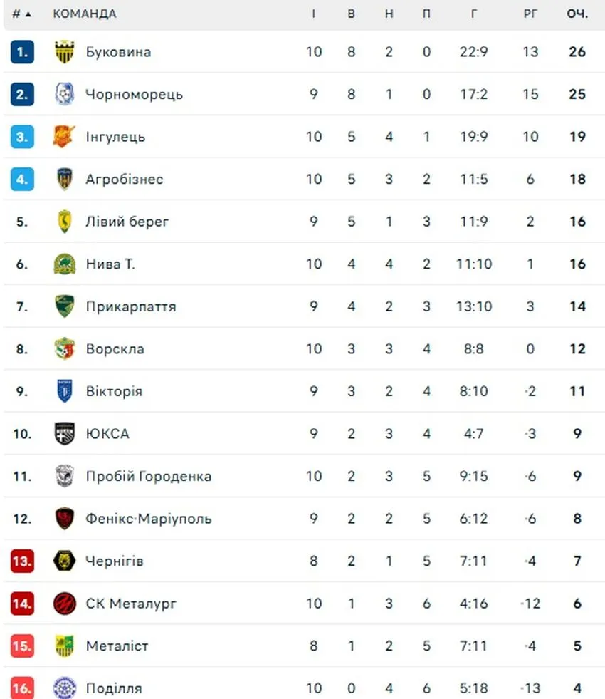 Восьма перемога поспіль Буковини, дебютний успіх Рябоконя, поразка Ворскли: всі результати середи у Першій лізі