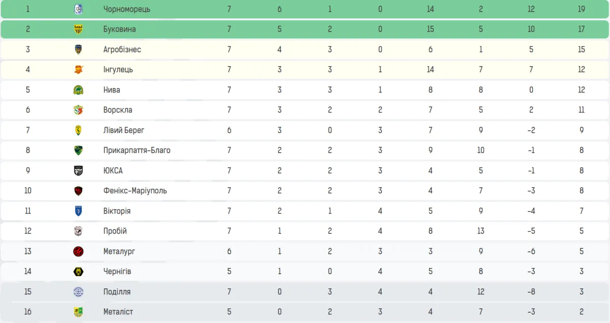 Визначилися результати всіх матчів і турнірна таблиця Першої ліги після семи турів: один поєдинок не відбувся
