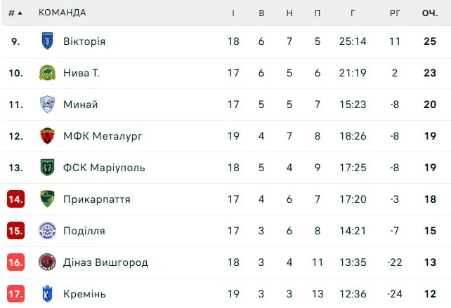 Завершився третій тур групи «Вибування» Першої ліги: як виглядає турнірна таблиця