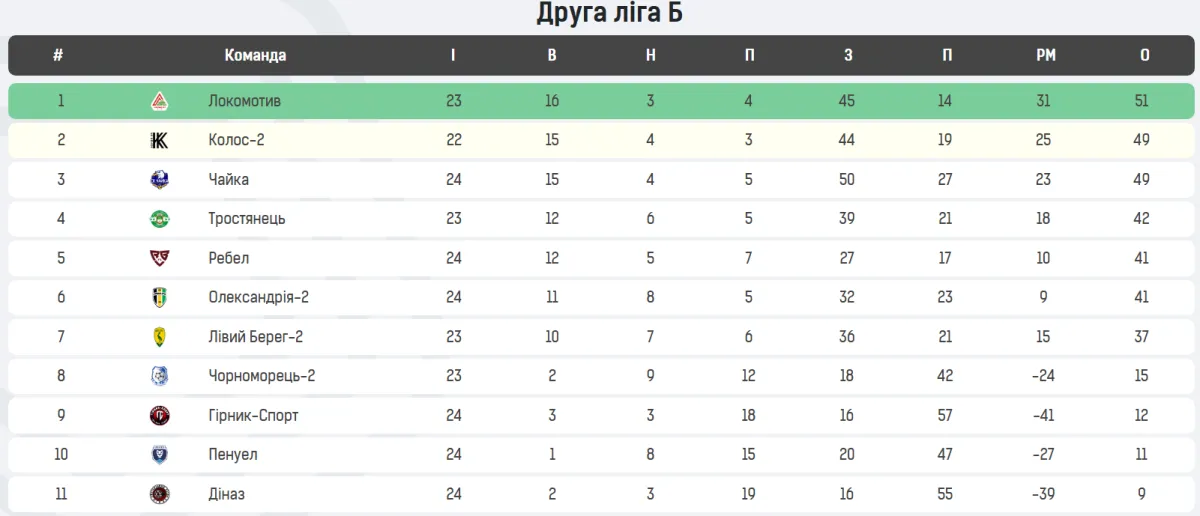 Локомотив виривається в лідери, Полісся-2 тримається на вершині: турнірна таблиця Другої ліги після 26 туру