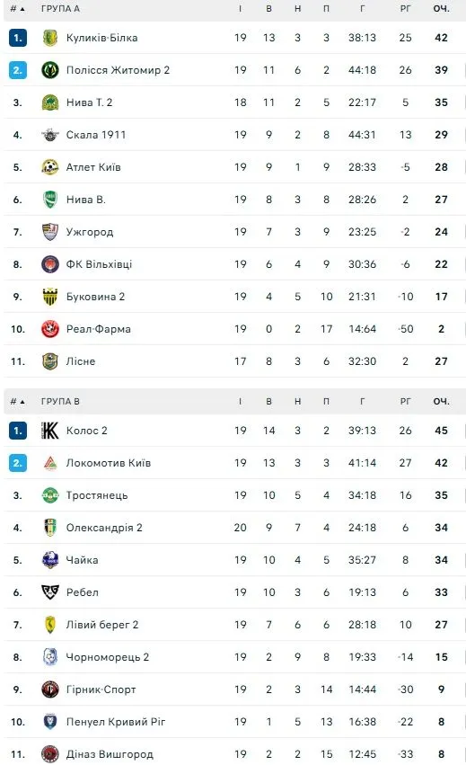 Турнірні таблиці Другої ліги після 21-го туру: команди третього дивізіону України пішли на зимову перерву