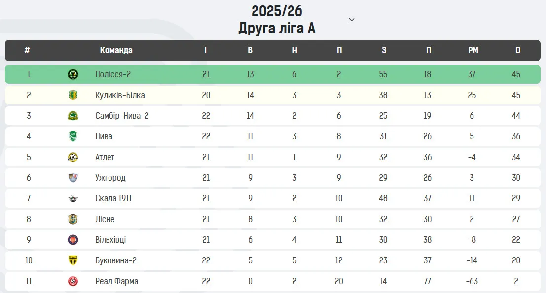Календар Другої ліги на 4 квітня