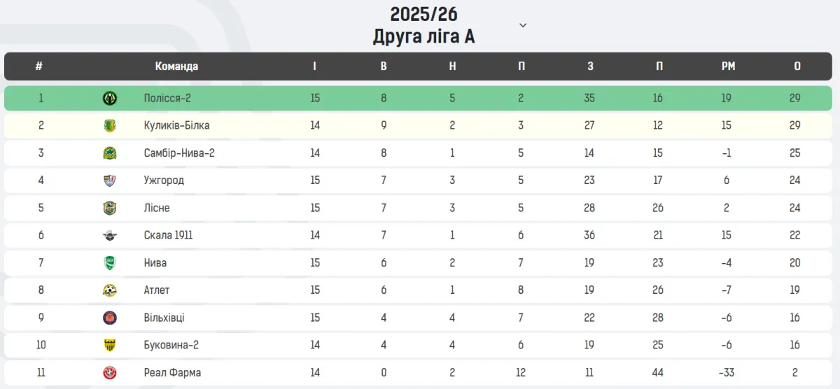 Завершилися усі поєдинки 16-го туру Другої ліги сезону 2025/26 в групах А та Б. Житомирське Полісся-2 та ковалівський Колос-2 очолюють турнірні таблиці.