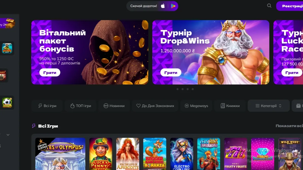 - Швидкі ігри (Instant Games): Aviator, Mines, Plinko та інші формати “на секунди”.