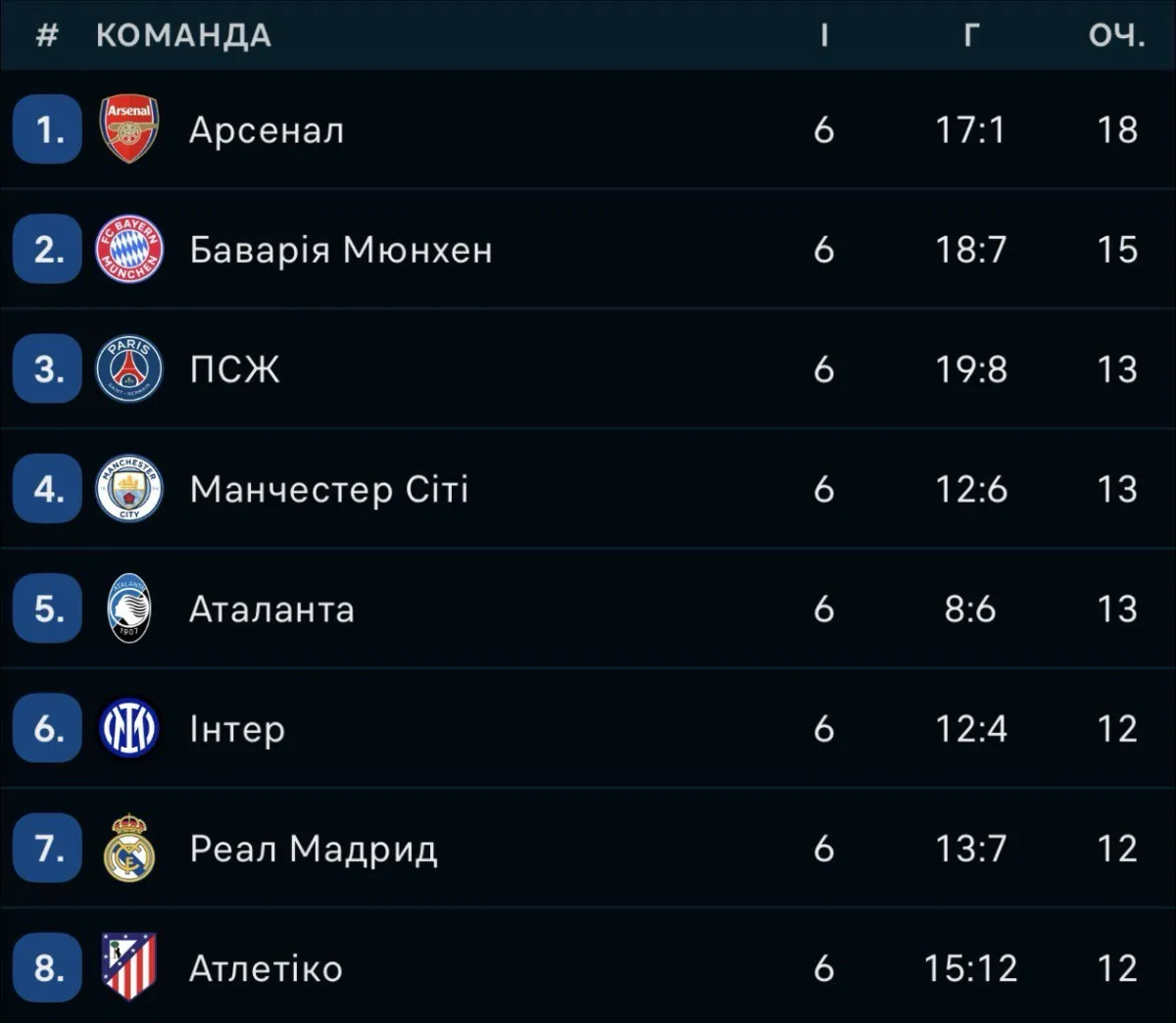 Турнірна таблиця Ліги чемпіонів