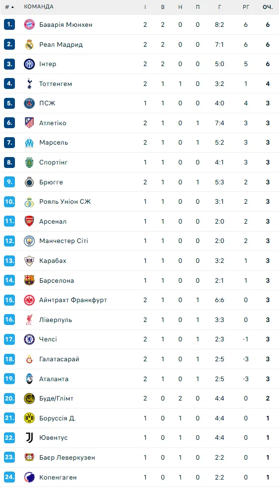 Результати всіх матчів Ліги чемпіонів 30 вересня
