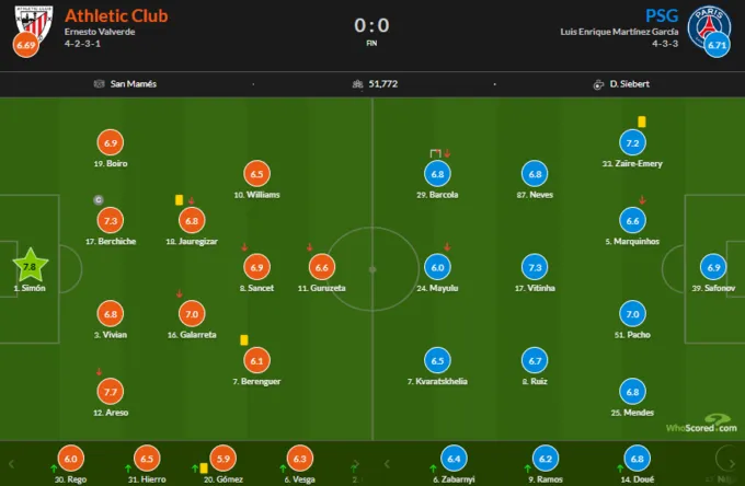 Український центральний захисник парижан Ілля Забарний вийшов на поле одразу після перерви, замінивши капітана команди Маркіньйоса на 46-й хвилині. За даними Whoscored, виступ українця оцінили у 6.4 бали з 10.