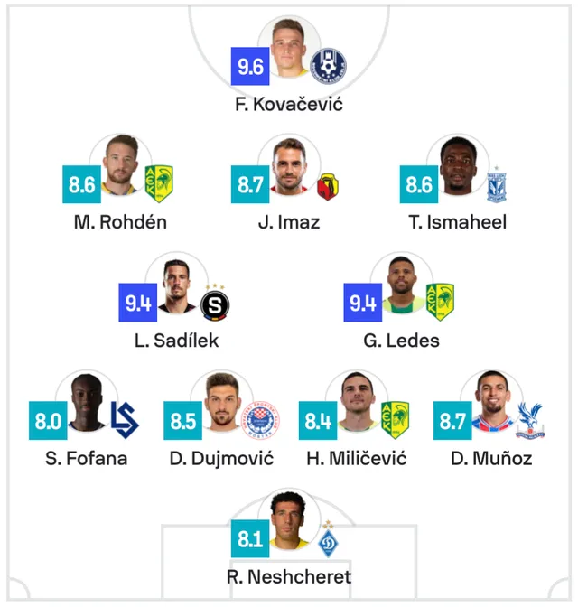 Незважаючи на два пропущені м'ячі, голкіпер Динамо Руслан Нещерет отримав високу оцінку від популярного статистичного порталу SofaScore та увійшов до символічної команди туру Ліги конференцій. Футболісти Шахтаря не потрапили до команди, незважаючи на перемогу.