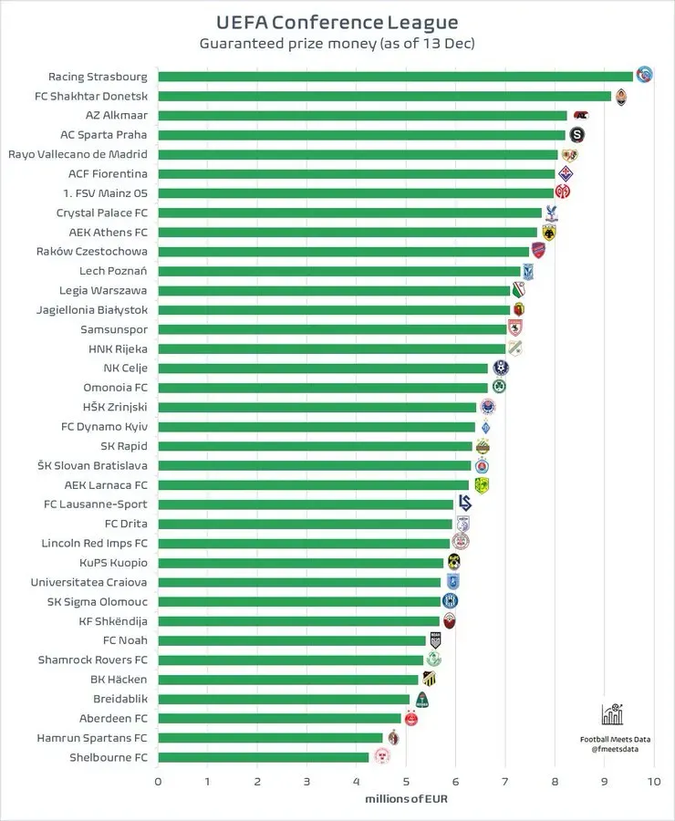 Відомо заробіток Динамо і Шахтаря за виступ на основному етапі Ліги конференцій. Як повідомляє аналітичний портал Football Meets Data, доходи грандів чемпіонату України є такими: