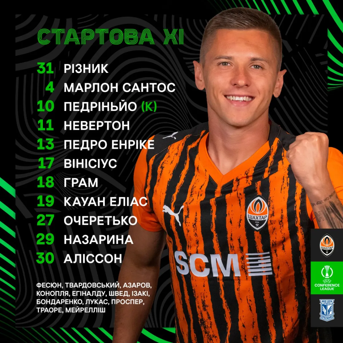 Арда Туран визначився, а пресслужба Шахтаря оголосила стартовий склад «гірників» на поєдинок-відповідь 1/8 фіналу Ліги конференцій проти Леха, який менш як за годину вийде на поле міського стадіону імені Хенрика Реймана у польському місті Краків.