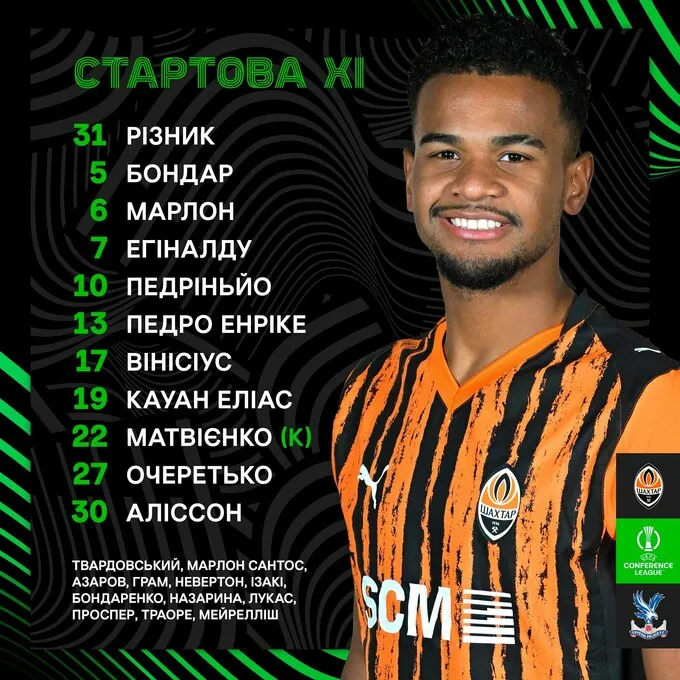 Головний наставник донецького Шахтаря Арда Туран визначився зі стартовим складом своєї команди на матч проти Кристал Пелас в рамках півфіналу Ліги конференцій.