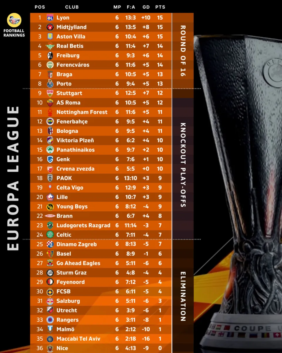 Турнірна таблиця Ліги Європи після п'ятого туру
