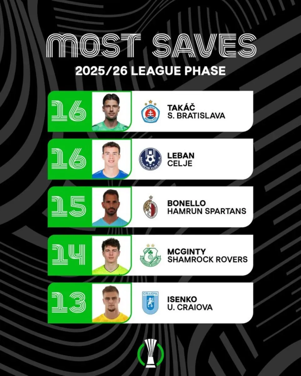 Український голкіпер Університаті Крайова Павло Ісенко зараз займає п'яте місце серед воротарів основного етапу Ліги конференцій за кількістю відбитих ударів.