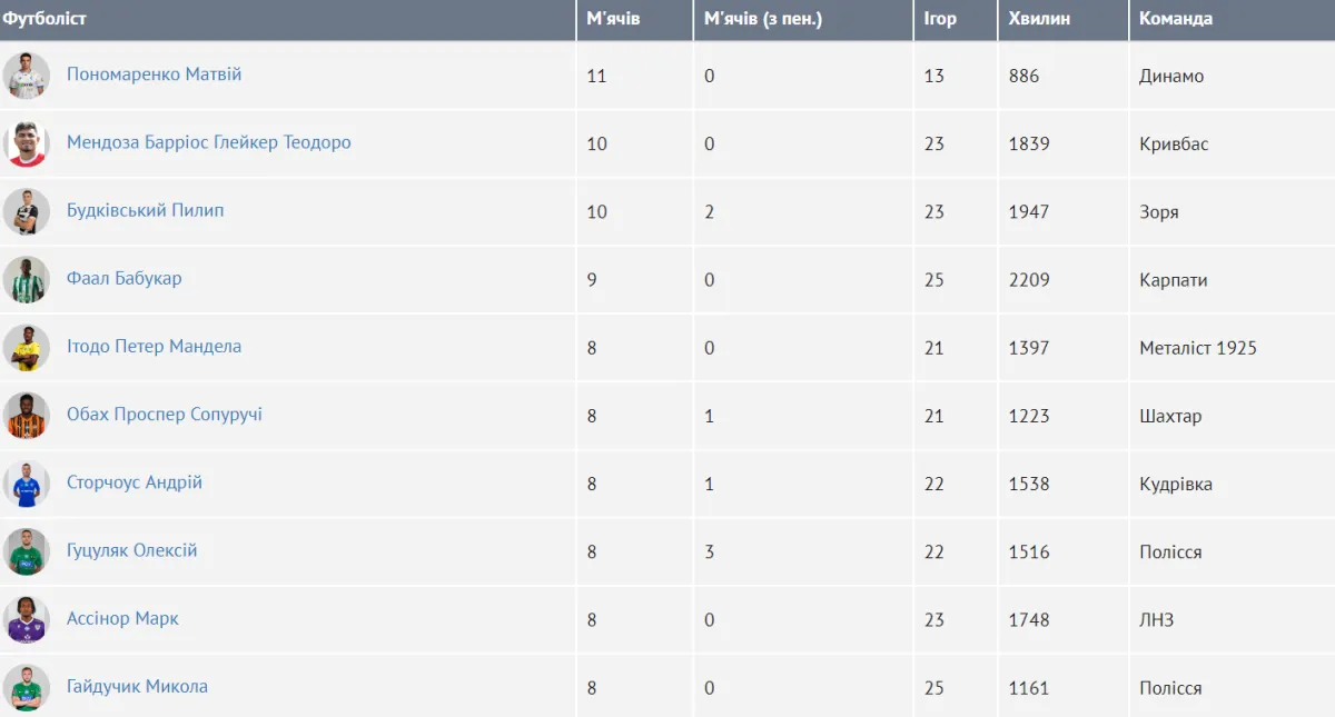 - 06 Таблиця бомбардирів УПЛ після 25-го туру