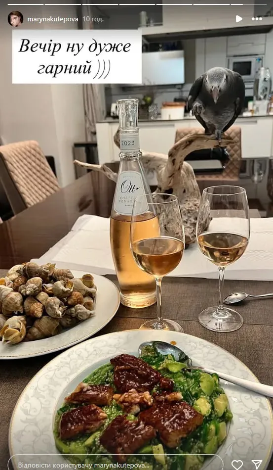 «Вечір ну дуже гарний», – підписала жінка світлину, де зображена вечеря з двома келихами.