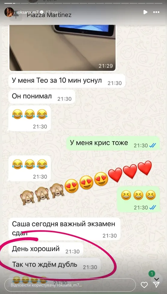 Роксана Малиновська по завершенні поєдинку третього туру відбірного етапу на чемпіонат світу між національними збірними Ісландії та України (3:5), де її чоловік Руслан відзначився дублем, запостила у мережі листування з однією зі своїх подруг, де та передбачила, що саме Малиновський стане головним героєм синьо-жовтої дружини.