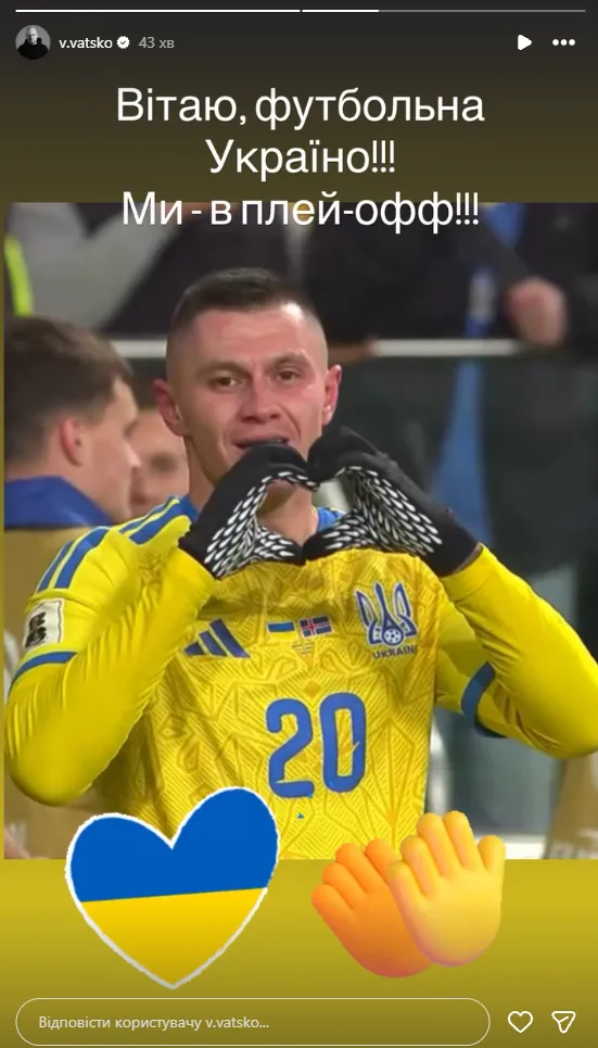 «Вітаю, футбольна Україно!!! Ми – в плейоф».