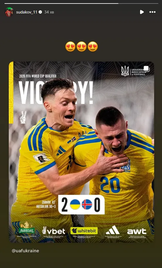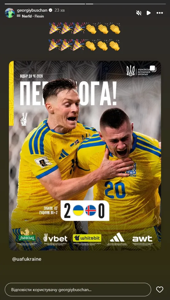 У неділю, 16 листопада, збірна України у Польщі здобула перемогу над Ісландією з рахунком 2:0 в рамках поєдинку вирішального, шостого туру групового етапу відбору до чемпіонату світу-2026.