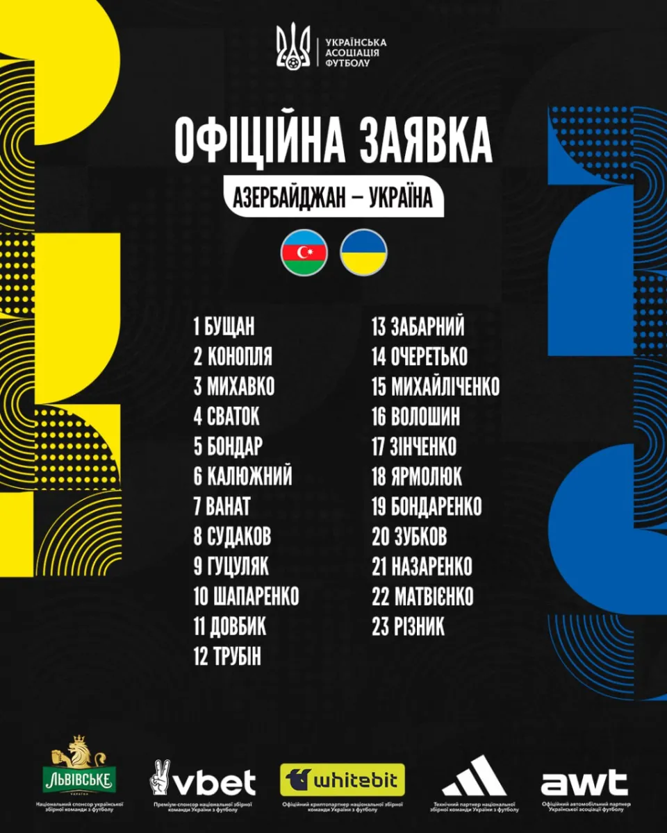 Головний тренер збірної України Сергій Ребров визначився з остаточною заявкою національної команди на поєдинок відбору до ЧС-2026 проти Азербайджану.