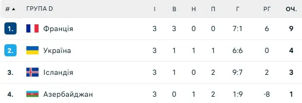 - Наразі збірна України посідає друге місце у своїй відбірковій групі з чотирма очками в трьох матчах.