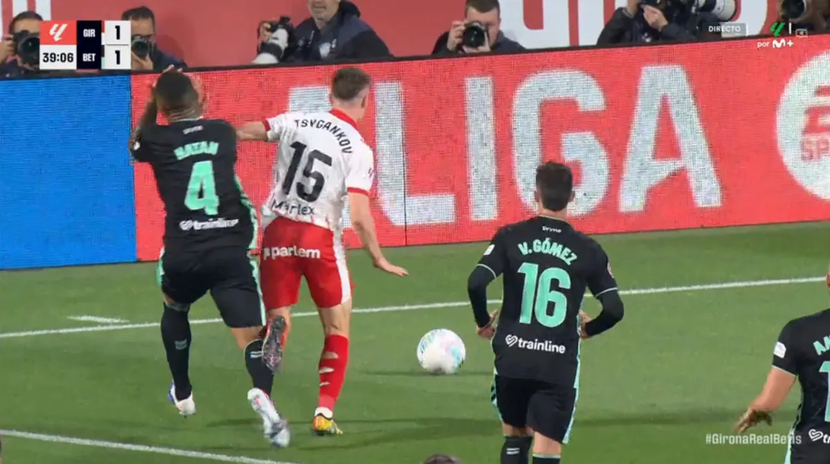 У рамках 33-го туру іспанської Ла Ліги Жирона зустрічалася з Бетісом (2:3). Під час напруженого поєдинку стався досить суперечливий епізод за участю українського вінгера каталонської команди Віктора Циганкова.