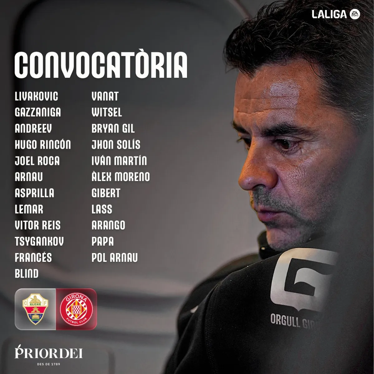 Головний тренер каталонської Жирони, де виступають Віктор Циганков та Владислав Ванат, Мічел Санчес визначився із заявкою команди на матч 15-го туру чемпіонату Іспанії проти Ельче.