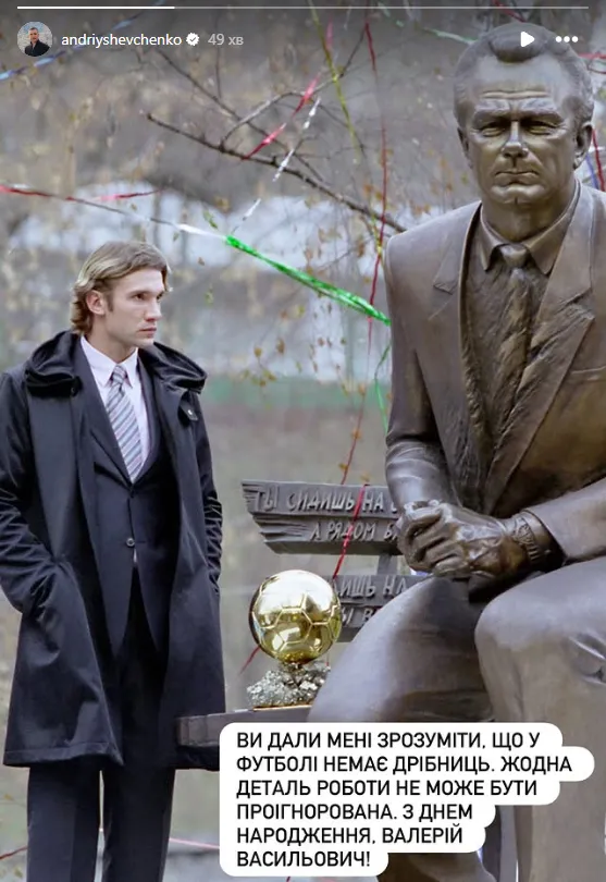Президент Української асоціації футболу (УАФ) та легенда Динамо Андрій Шевченко написав подяку культовому тренеру біло-синіх Валерію Лобановському в день його народження.