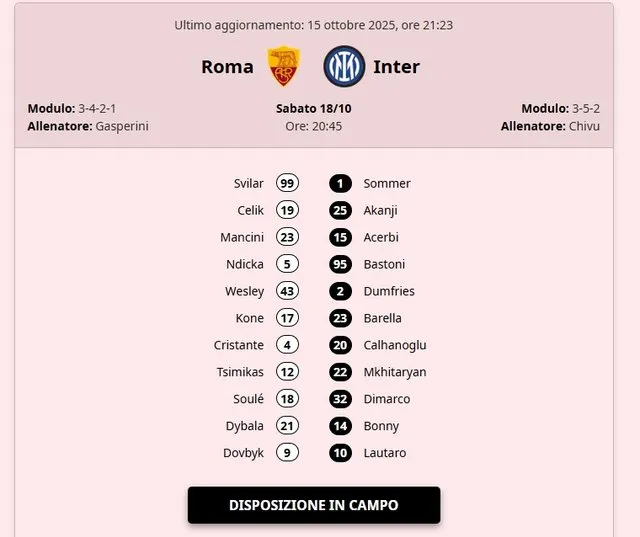 - Рома чудово розпочала сезон під керівництвом нового тренера Джан П'єро Гасперіні, ділячи перше місце в турнірній таблиці з Наполі. Обидві команди набрали по 15 очок.