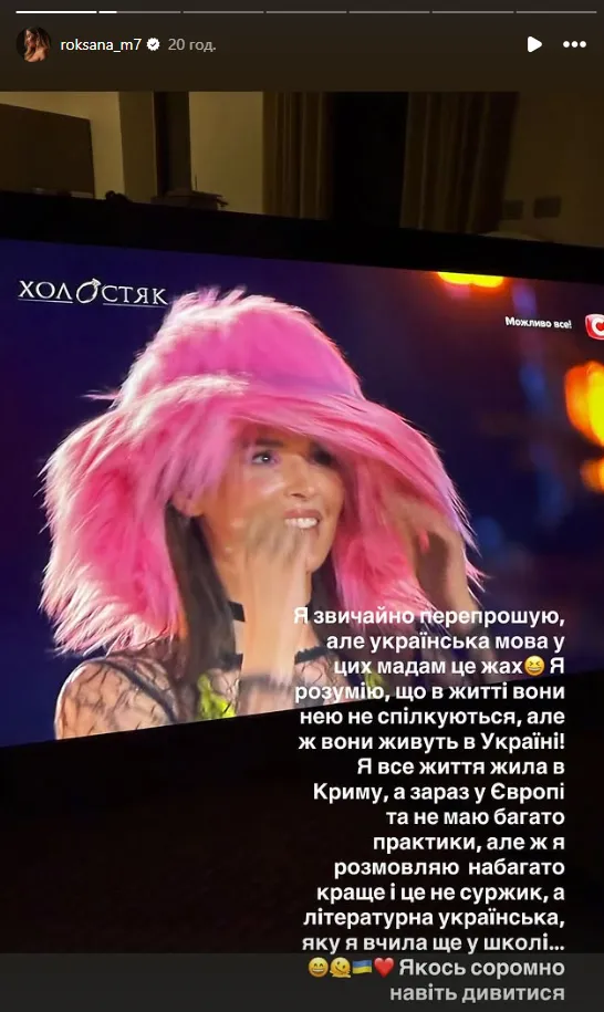 Пані Роксану вразила, у поганому сенсі цього слова, українська мова з уст учасниць шоу.