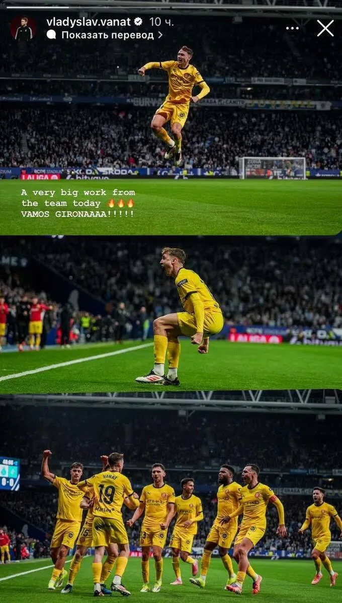 «Дуже чудова робота команди. З перемогою, Жирона», – лаконічно написав Ванат у Instagram, прикріпивши фото з переможного матчу.