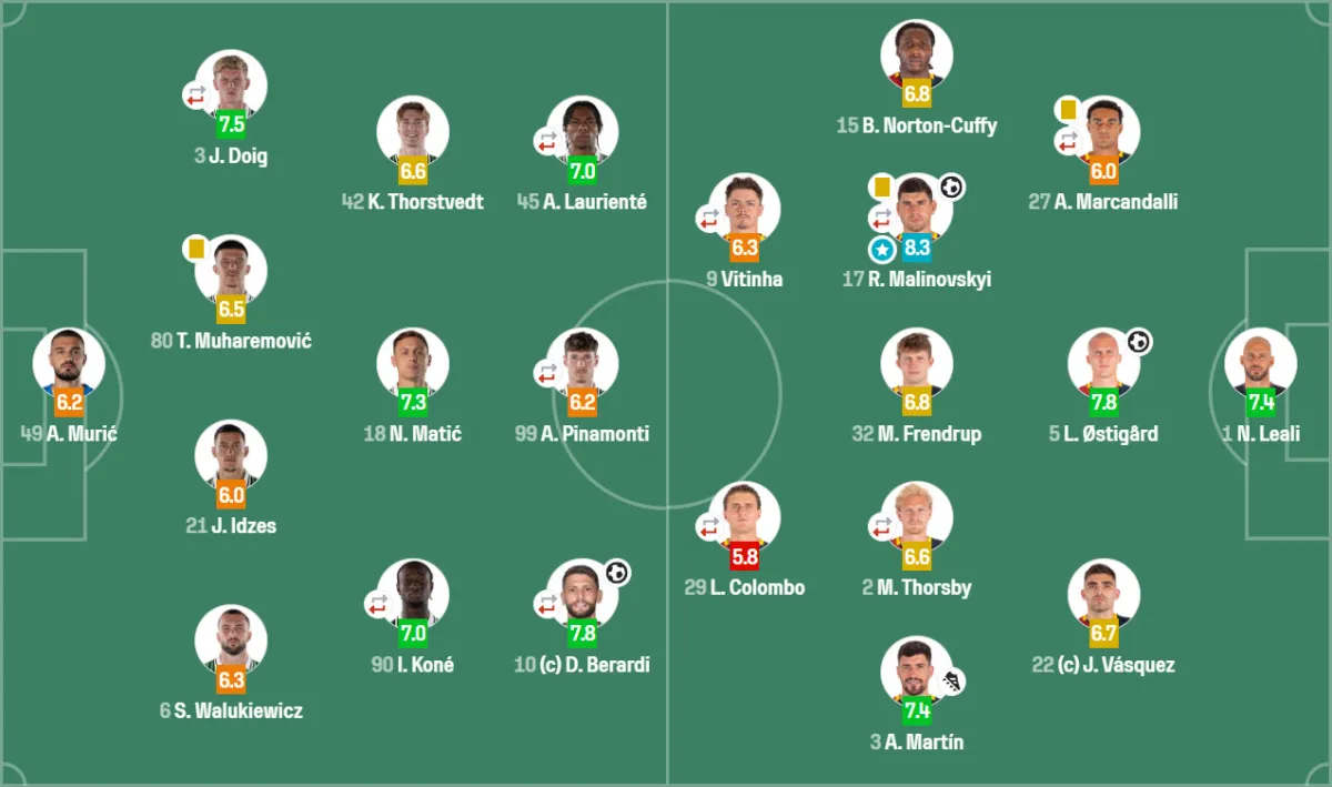 Український півзахисник Дженоа Руслан Малиновський отримав найвищу оцінку серед учасників матчу 10-го туру італійської Серії А проти Сассуоло (2:1) – 8.3. Водночас портал WhoScored оцінив його виступ лише у 6.2. Хоча слід зазначити, що всі футболісти цього поєдинку отримали від 6.0 – 6.3, що є доволі дивно.