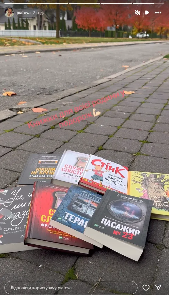 «Книжки для всієї родини у подорож», – написала Пятова.