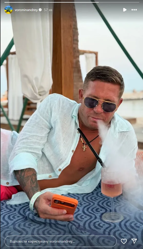 Екснападник англійського Ліверпуля та збірної України Андрій Воронін показав у соціальних мережах свій відпочинок. На фото колишній футболіст курить кальян.