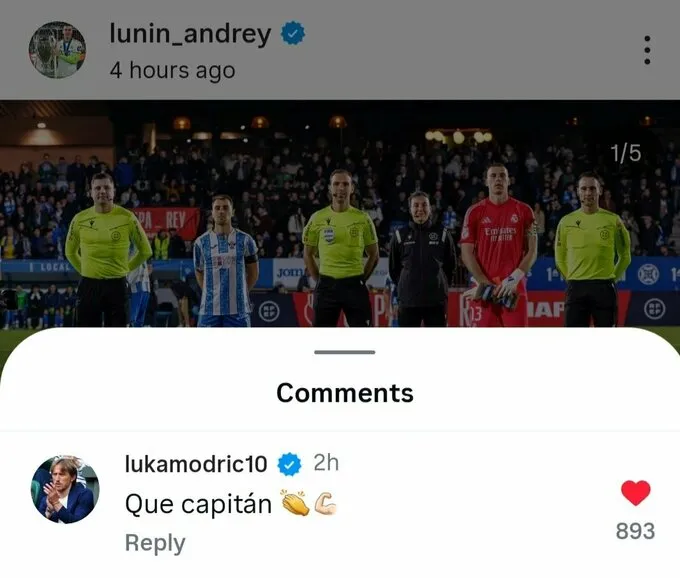 Лунін зберігав свої ворота у недоторканності до 80-ї хвилини, а Реал здобув перемогу з рахунком 3:2. Відзначимо, що українця підтримав колишній капітан та легенда клубу Лука Модріч, який відзначив його у Instagram.