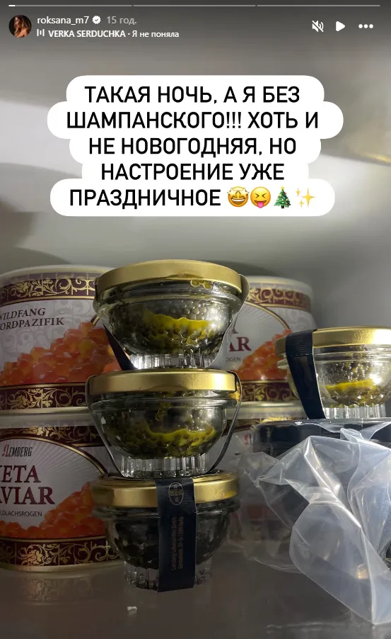 «Така ніч, а я без шампанського!!! Хоч і не новорічна, але настрій вже святковий», – написала панянка російською.