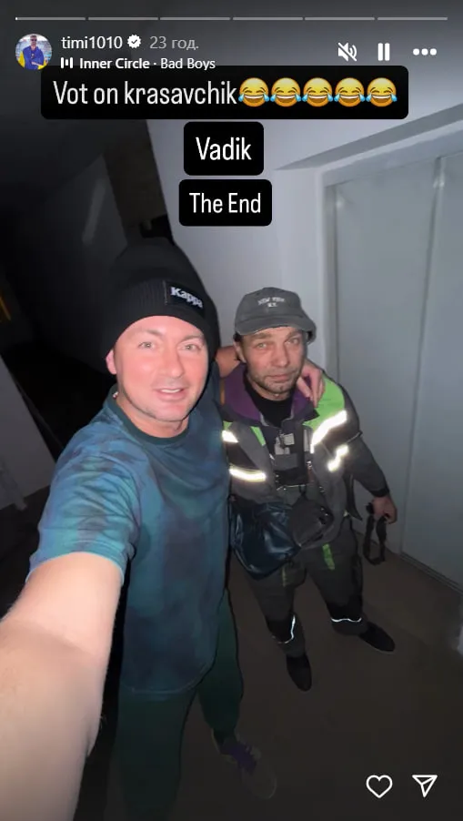 «Порятунок😂✌️ Добре, світло не увімкнули🙈», – написав Мілевський в Instagram.
