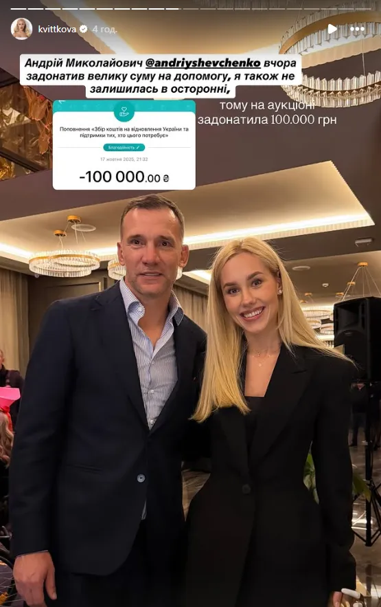 «Андрій Миколайович вчора задонатив велику суму на допомогу, я також не залишилися в осторонні», – написала дівчина, показавши свій донат у розмірі 100 тисяч гривень.