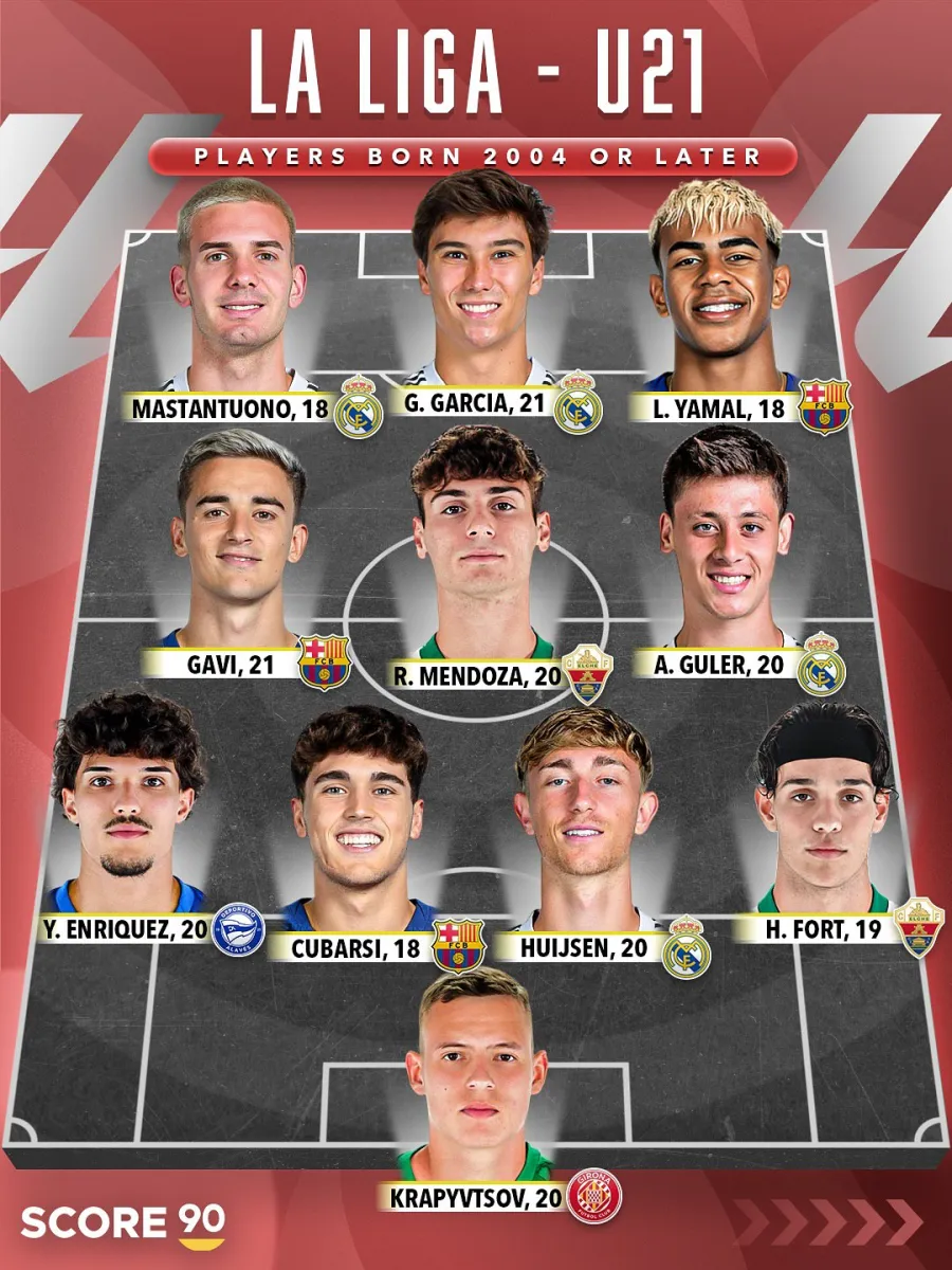 - Півзахисники: Арда Гюлер (Реал Мадрид), Родріго Мендоса (Ельче), Пабло Гаві (Барселона);