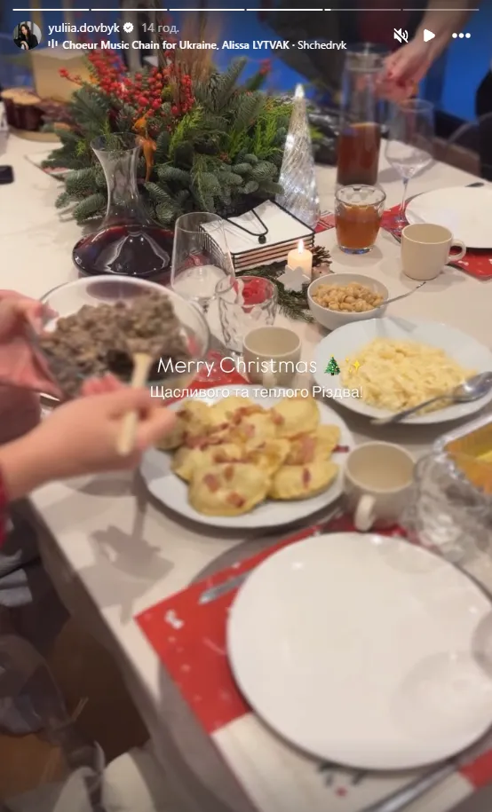 У свою чергу Юлія Федецька, обраниця колишнього футболіста Карпат, Шахтаря та Дніпра, виклала фото того, як накриває святковий стіл вдома на фоні нарядженої ялинки.