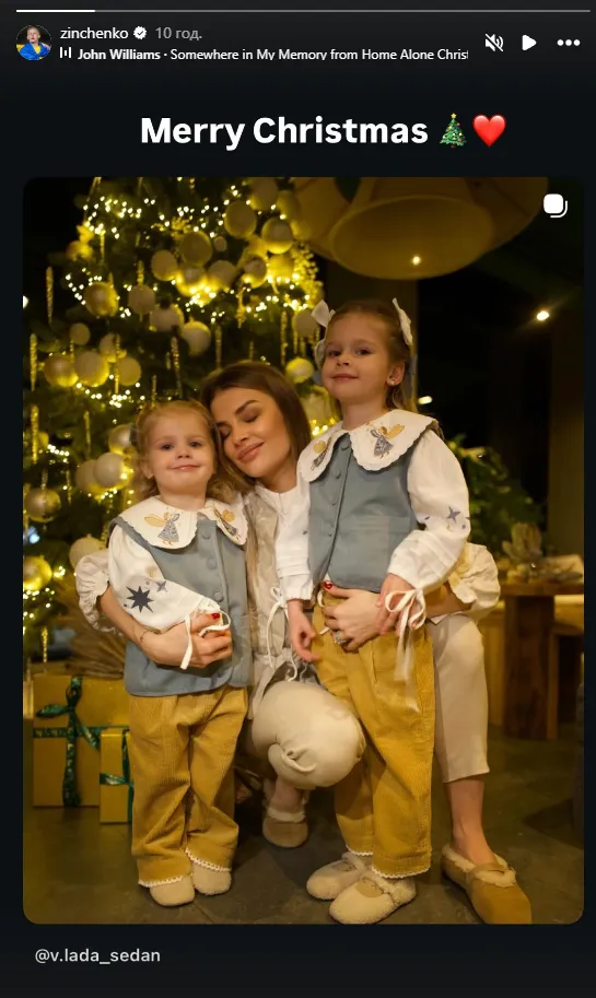 На відміну від інших легіонерів, спільних фото Олександра Зінченка з дружиною Владою Седан та двома донечками. Натомість, захисник Ноттінгем Форест, який належить Арсеналу, репостнув допис Седан у соцмережі Instagram.