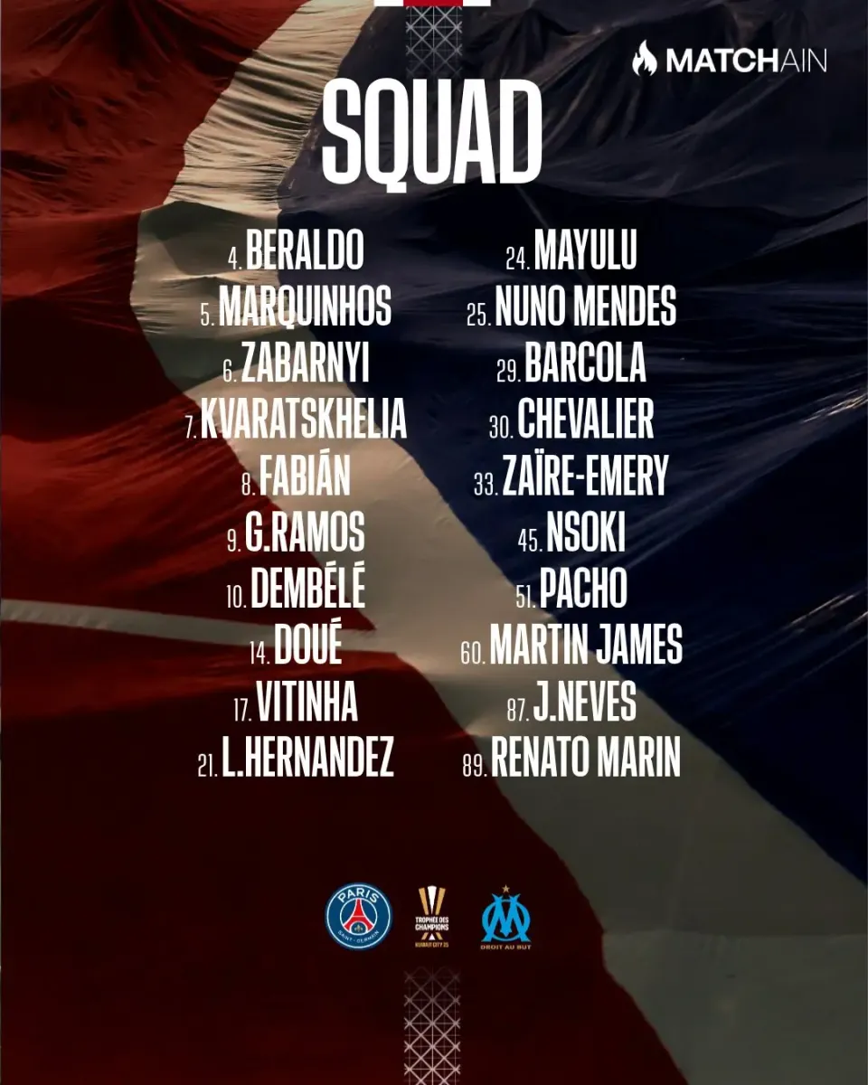Головний тренер ПСЖ Луїс Енріке сформував список гравців на матч за Суперкубок Франції. У четвер, 8 січня, паризький клуб зіграє з Марселем за цей трофей.